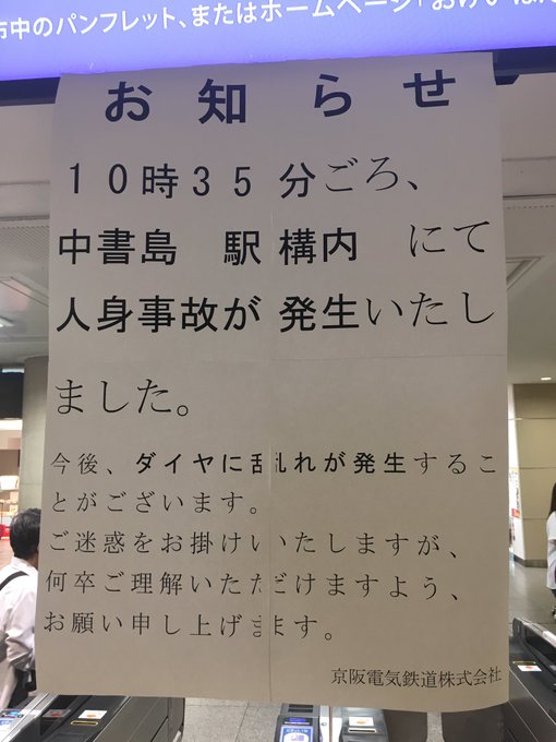 運行情報 京阪線 淀駅で人身事故のため遅延 お客様の身体の一部が散乱し線路が真っ赤 4月16日 Naver まとめ