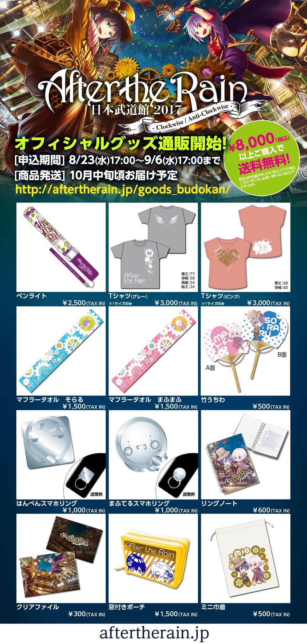 After The Rain On Twitter Atr 日本武道館 2017 グッズ通販受付中 申込期間 9月6日 水 17時まで 通販url Https T Co 4uc8egxtys 申込件数が規定数に達した場合 販売終了となる場合がございますので ご了承ください Atr武道館 Https T Co