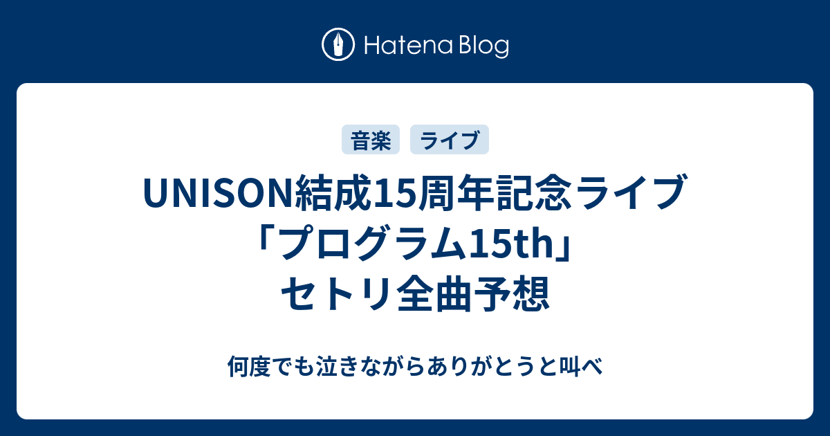 Unison結成15周年記念ライブ プログラム15th セトリ全曲予想 何度でも泣きながらありがとうと叫べ